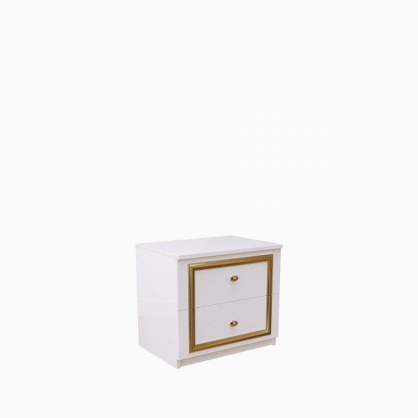 Тумба Eva выполнена из качественного материала с глянцевым белым покрытием и золотыми элементами. Это сочетание создает роскошный и элегантный вид, который станет настоящей гордостью вашей комнаты. Высокое качество материала и отделки гарантируют долговечность и надежность тумбы, а также ее легкое использование.