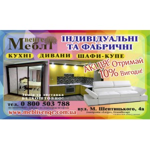 Уважаемые клиенты. Спасибо за интерес нашей мебелью. МеблиВенге предлагает Вам получить Выгоду от первой покупки !!!. Акция действует только для новых клиентов, проживающих в Тернополь и пригородной территории.