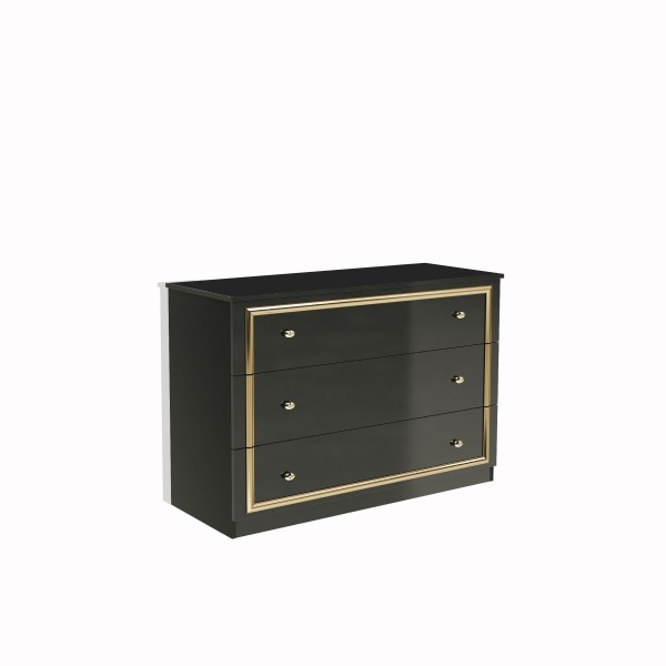 Комод Eva чорний - Золото от МебельВенге станет идеальным дополнением для вашей спальни. Вы можете приобрести его у нас по недорогой цене и быть уверенными в его высоком качестве. Также мы предлагаем широкий выбор других спальных гарнитур MiromarkEva Глянець Чорний - Золото, чтобы вы могли создать идеальное пространство для отдыха и комфорта.