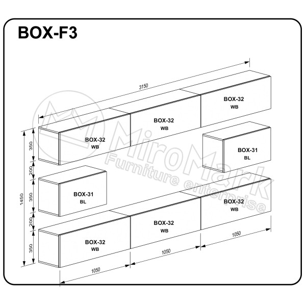 Характеристики Модульная гостиная BOX-F3 MiroMark