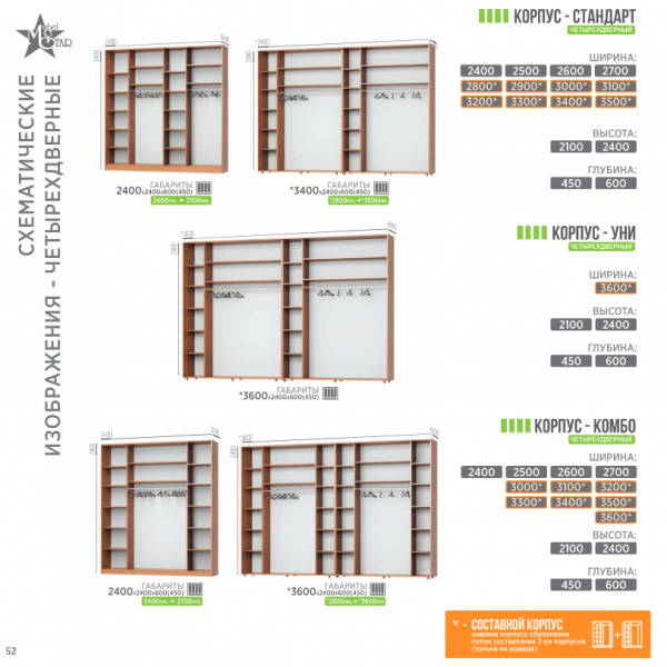 Характеристики Шафа-купе чотирьохдверна Фотодрук від 240см MebelStar MebelStar