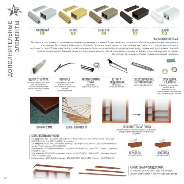 При заказе шкафа-купе нестандартного цвета к стоимости прибавляется 10%.