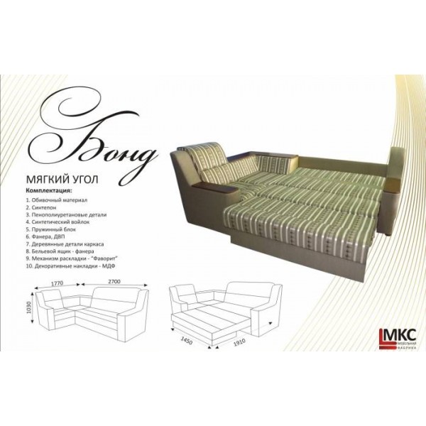 | Матеріал Стільниці | прямые, твердые, обтянуты тем же материалом, что и обивка |