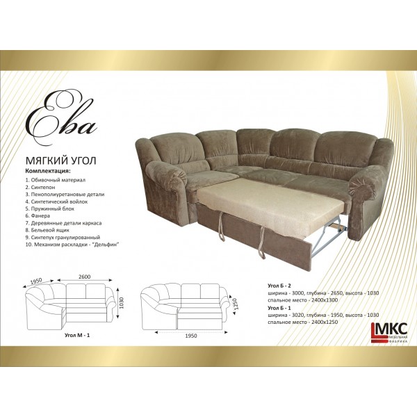 Характеристики Кутовий диван Єва МКС